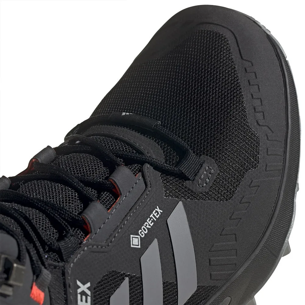 L’empeigne du Terrex Swift R3 Mid GTX est fabriquée à partir d’un maillage textile hautement respirant et durable qui utilise des renforts thermosoudés pour un soutien maximal. Un contrefort de talon élargi augmente la stabilité multidirectionnelle, tandis qu’un système de laçage rapide relié à un col de talon mi-cut améliore l’adhérence au milieu du pied. Une couche GORE TEX® apporte un degré d’imperméabilité considérable à la tige.