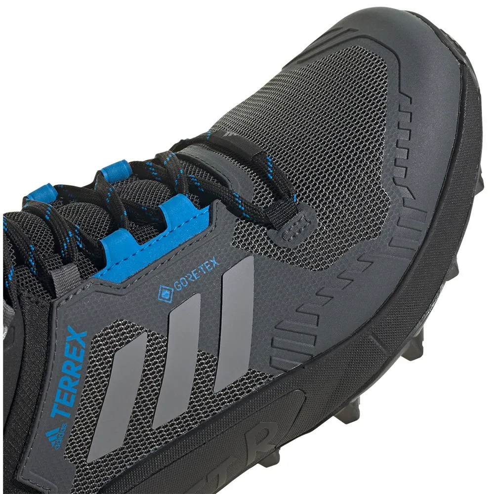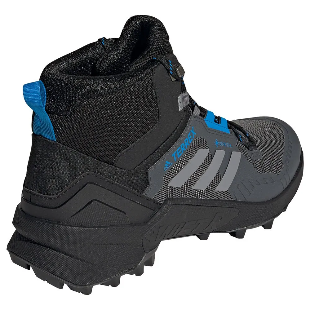 La tige du Terrex Swift R3 Mid GTX est fabriquée à partir d’un maillage textile hautement respirant et durable qui utilise des renforts thermosoudés pour un soutien maximal. Un contrefort de talon élargi augmente la stabilité multidirectionnelle, tandis qu’un système de laçage rapide relié à un col de talon mi-cut améliore l’adhérence au milieu du pied. Une couche de GORE TEX® apporte un degré d’imperméabilité considérable à la tige.