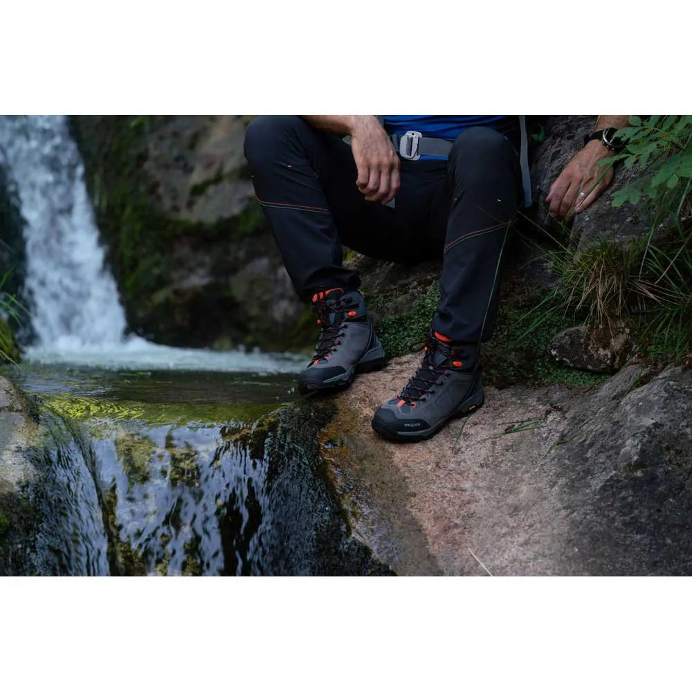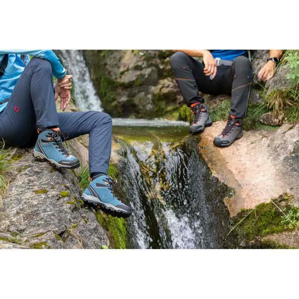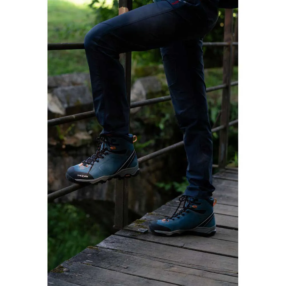La tige souple en daim et tissu imperméables offre un ajustement confortable et ajusté, tandis que la doublure en mesh respirant assure un confort climatique optimal pour votre pied. Pour assurer une protection de premier ordre contre les éléments, nous avons développé la technologie Trezeta Water Stopper, une membrane qui empêche l’eau de pénétrer dans la chaussure. La pointe est dotée d’une technologie de caoutchouc pulvérisé qui est surmoulée directement sur la tige pour offrir une protection exceptionnelle à vos orteils. Les pieds restent au sec et entièrement protégés : la semelle intercalaire en EVA à double densité offre un amorti lors de la frappe du pied pour réduire les impacts, minimiser les vibrations et offrir une démarche plus douce. La semelle Vibram® Inverness présente une large surface d’appui pour une stabilité maximale, avec des crampons largement espacés et autonettoyants. La semelle présente une bordure surélevée pour assurer une excellente protection du pied sur les terrains difficiles.
