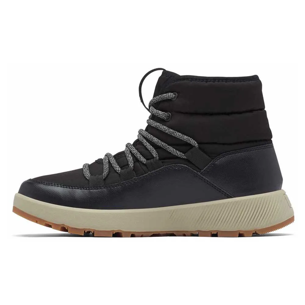 La structure de la botte Columbia comprend une semelle en caoutchouc à haute traction qui favorise l’adhérence, vous empêche de déraper et vous empêche de laisser des empreintes sur tout type de surface. Les lacets de cette version sont élastiques.