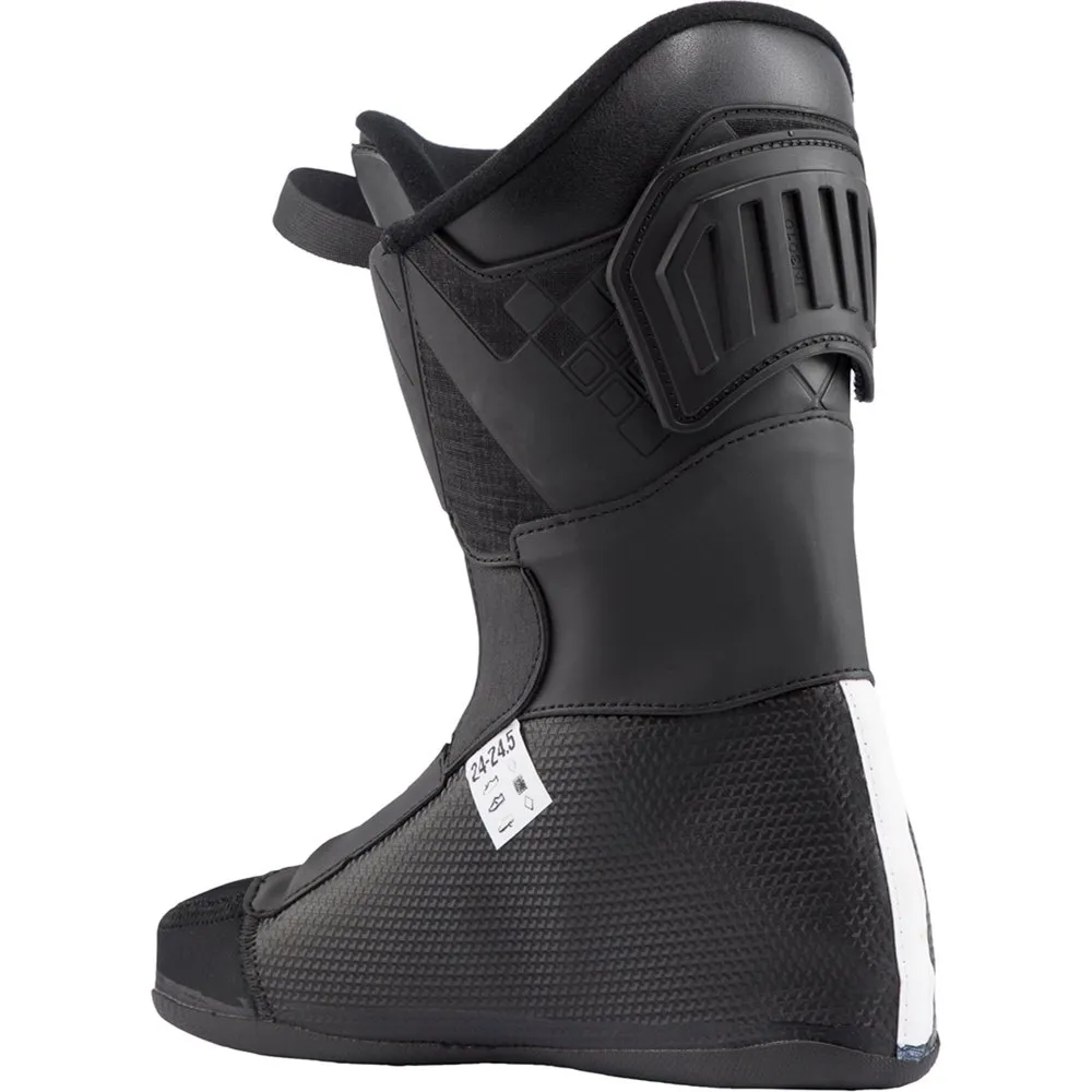 – L’ajustement de la botte (ou du dernier) est la largeur du pied mesurée au 5ème métatarsien (partie la plus large de l’avant-pied). Il détermine le niveau de contrôle et de précision du skieur. Pour un bon rapport entre confort et contrôle, choisissez une botte qui correspond au volume global et à la longueur de votre pied. Ajustement entre 92-95 mm : Étroit, Ajustement entre 97-99 mm : Moyen, Ajustement entre 100-102 mm : Confort